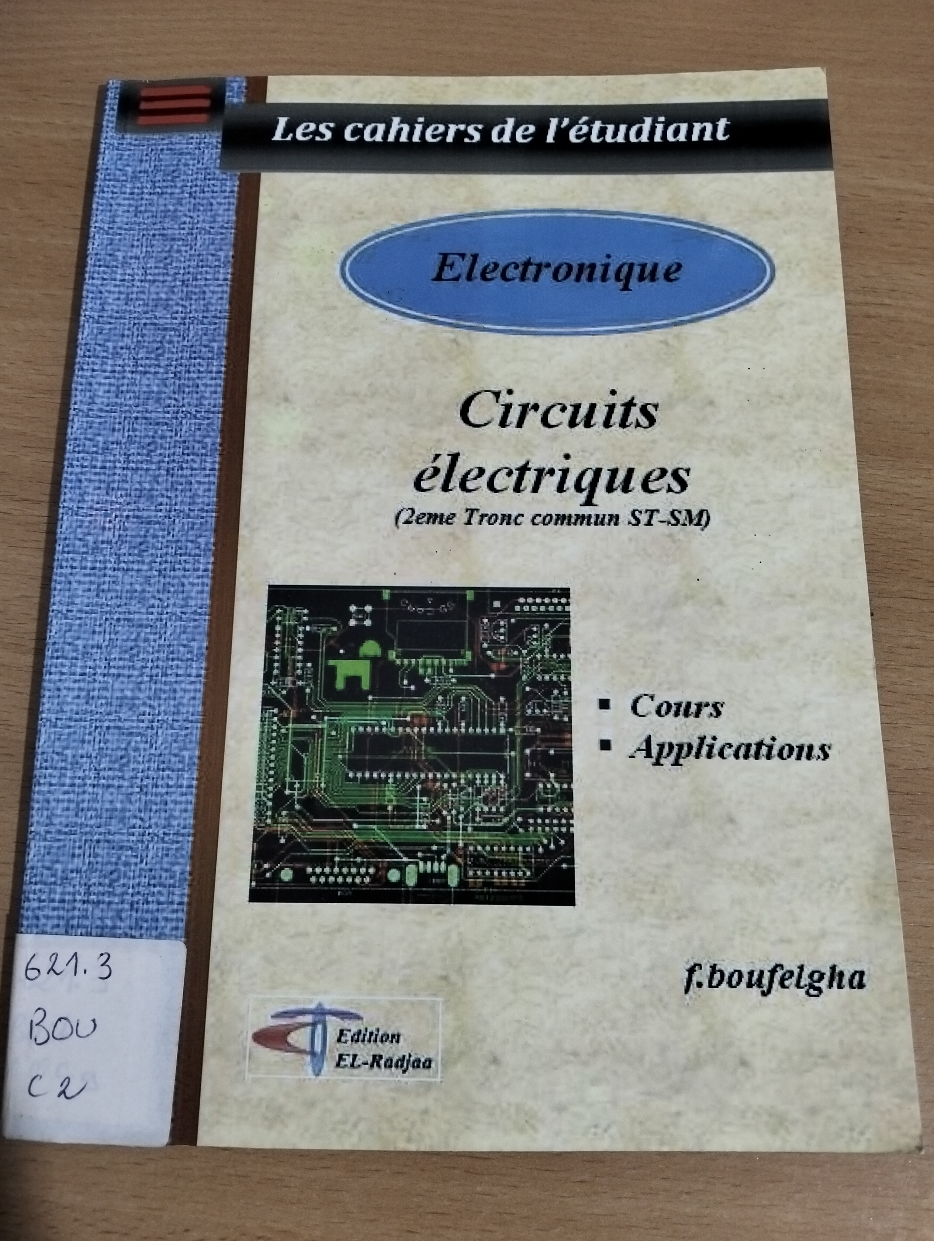 Le livre Circuits électriques, 2ᵉ tronc commun ST‑SM : cours et applications de F. Boufelgha (2013) est un manuel destiné aux étudiants du tronc commun ST‑SM, visant à fournir une compréhension claire et pratique des circuits électriques. Il présente d’abord les notions fondamentales telles que la tension, le courant et la résistance, ainsi que la définition et la structure d’un circuit électrique. Le texte expose ensuite les lois essentielles, notamment la loi d’Ohm et les lois de Kirchhoff, qui permettent d’analyser les circuits simples et complexes. L’ouvrage explique également les différentes associations de composants, résistances en série et en parallèle, ainsi que les théorèmes d’analyse simplifiée comme ceux de Thévenin, Norton et de superposition, facilitant la résolution des circuits. Chaque concept est illustré par des exemples et des exercices pratiques, permettant aux étudiants d’appliquer la théorie à des situations concrètes. La pédagogie du manuel combine théorie concise et applications pratiques, offrant une base solide pour comprendre et analyser le comportement des circuits électriques tout en développant des compétences de raisonnement et de calcul essentielles dans le domaine de l’électrotechnique.