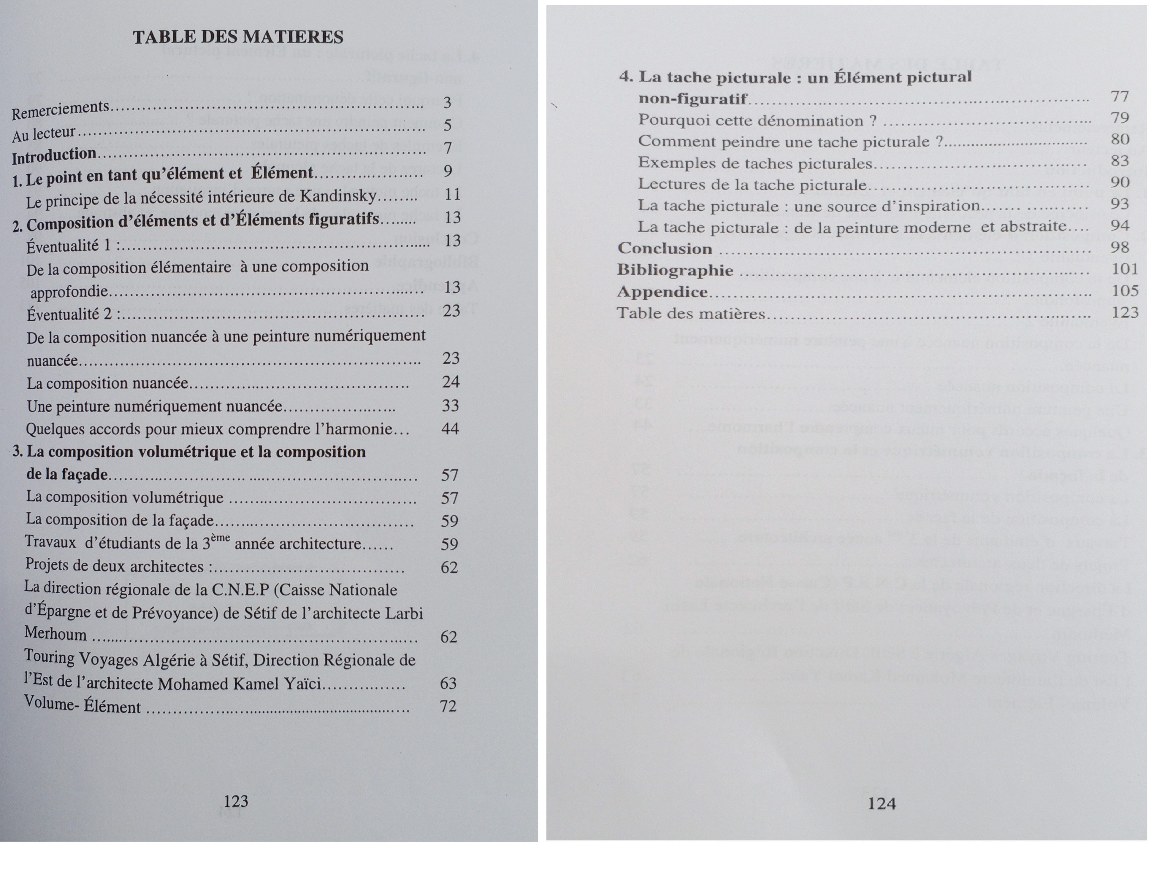 Cet ouvrage est le fruit du croisement entre une approche empirique et le recours à des références comme WAssily Kandinsky, Paul Jackson Pollock....Il sa'ppuie sur les notions comme le point, les éléments extérieur et intérieur, la nécissité intérieure ainsi que les odéfinitions de la composition....par ailleurs on fait un détour inévitable à la composition nuancée...