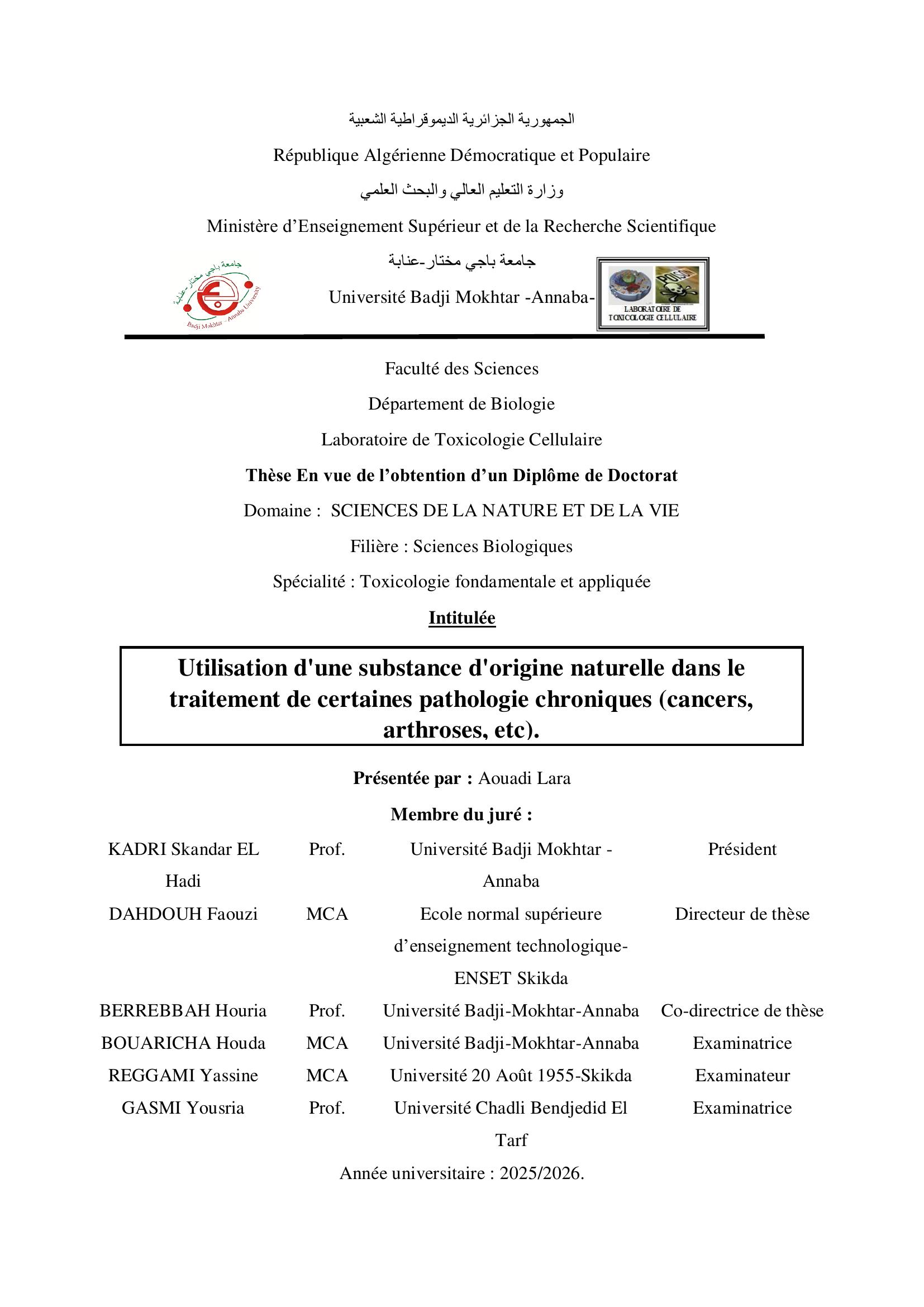 Utilisation d'une substance d'origine naturelle dans le traitement de certaines pathologie chroniques (cancers, arthroses, etc)