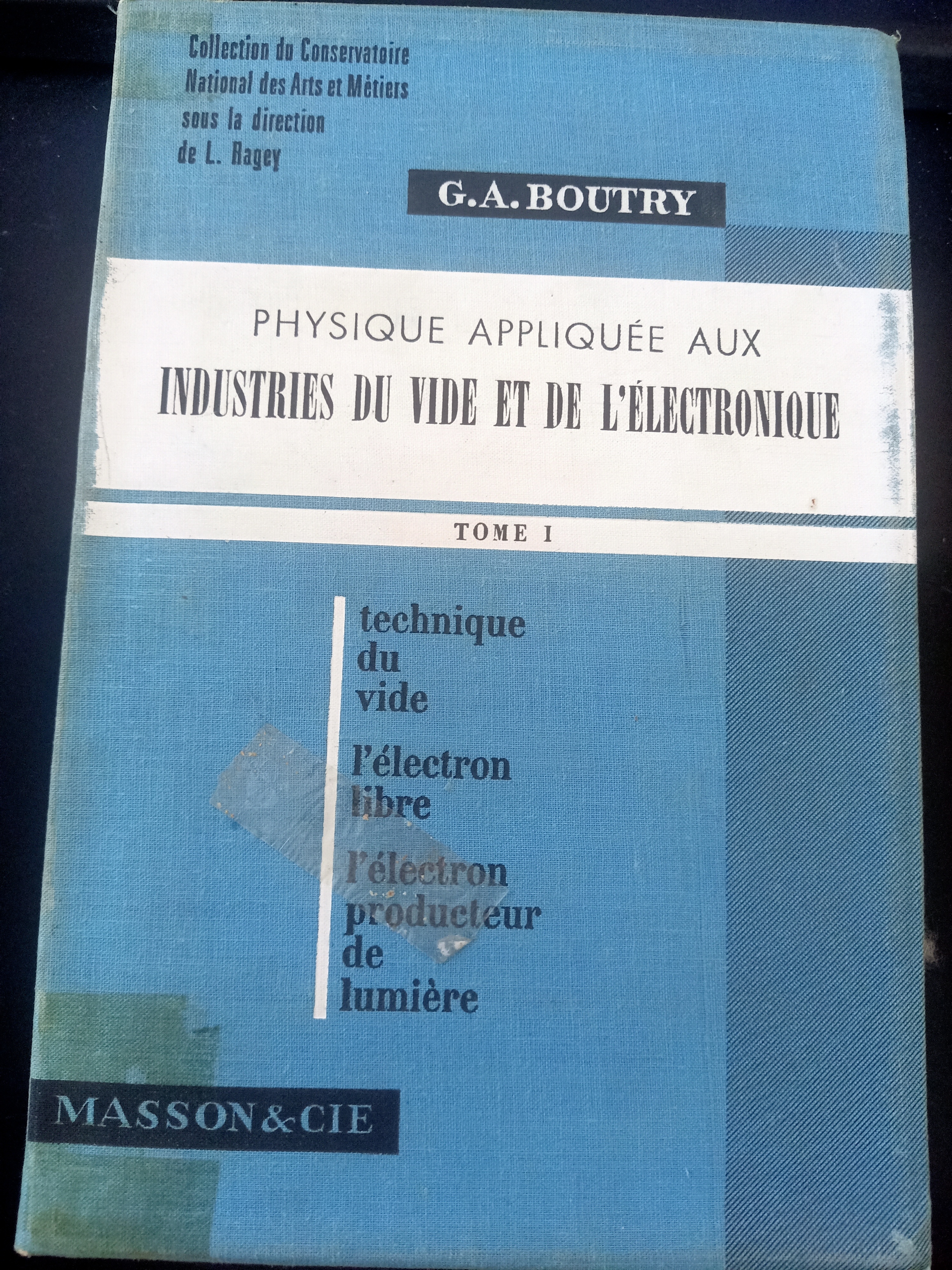 Boutry, G. (1962). Physique appliquée aux industries du vide et de l'électronique. T1, technique du vide, l'électron libre, l'électron producteur de lumière . MASSON & CIE;