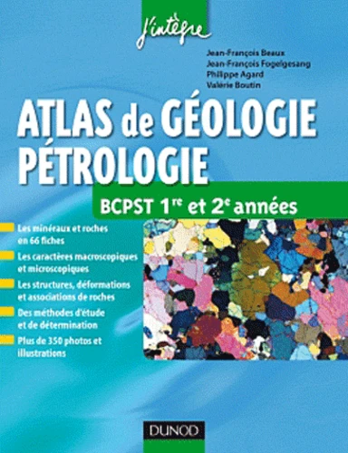 Cet ouvrage en quatre couleurs couvre le programme de Géologie-pétrographie de 1re et 2e années des classes préparatoires BCPST. Il permet à l’étudiant de s’exercer à la reconnaissance de roches et minéraux afin de réussir l’épreuve orale du concours. Chaque double-page présente l’analyse d’une roche ou d’un minéral avec des photographies de l’échantillon, des photographies de lames-minces en lumière polarisée ainsi qu’une diagnose raisonnée (description scientifique et critères de classification).Chaque fiche présente les caractères généraux des roches (macroscopiques et microscopiques) ainsi que des enseignements complémentaires selon le type de roche (composition chimique, origine, gisements, faciès, particularités).