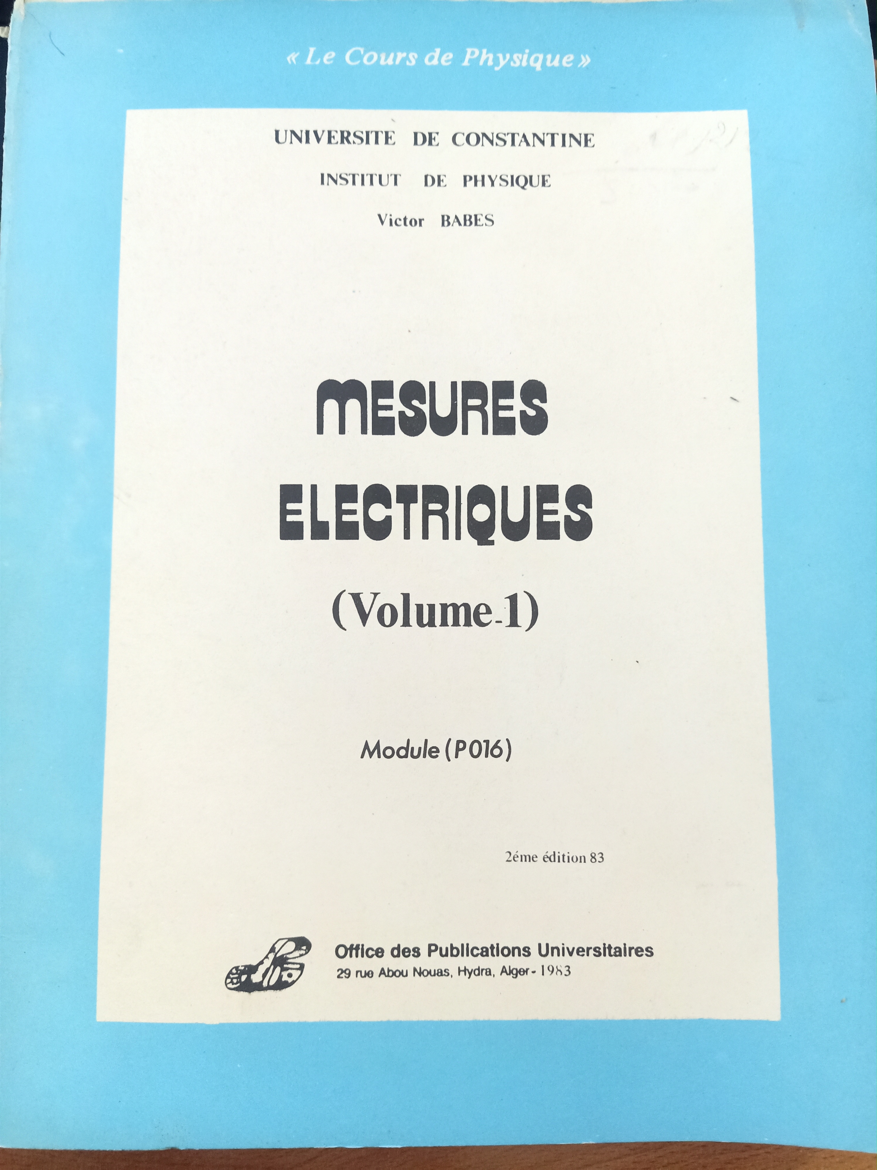 Babès, V. (1983). Mesures électriques. V1 . OPU;