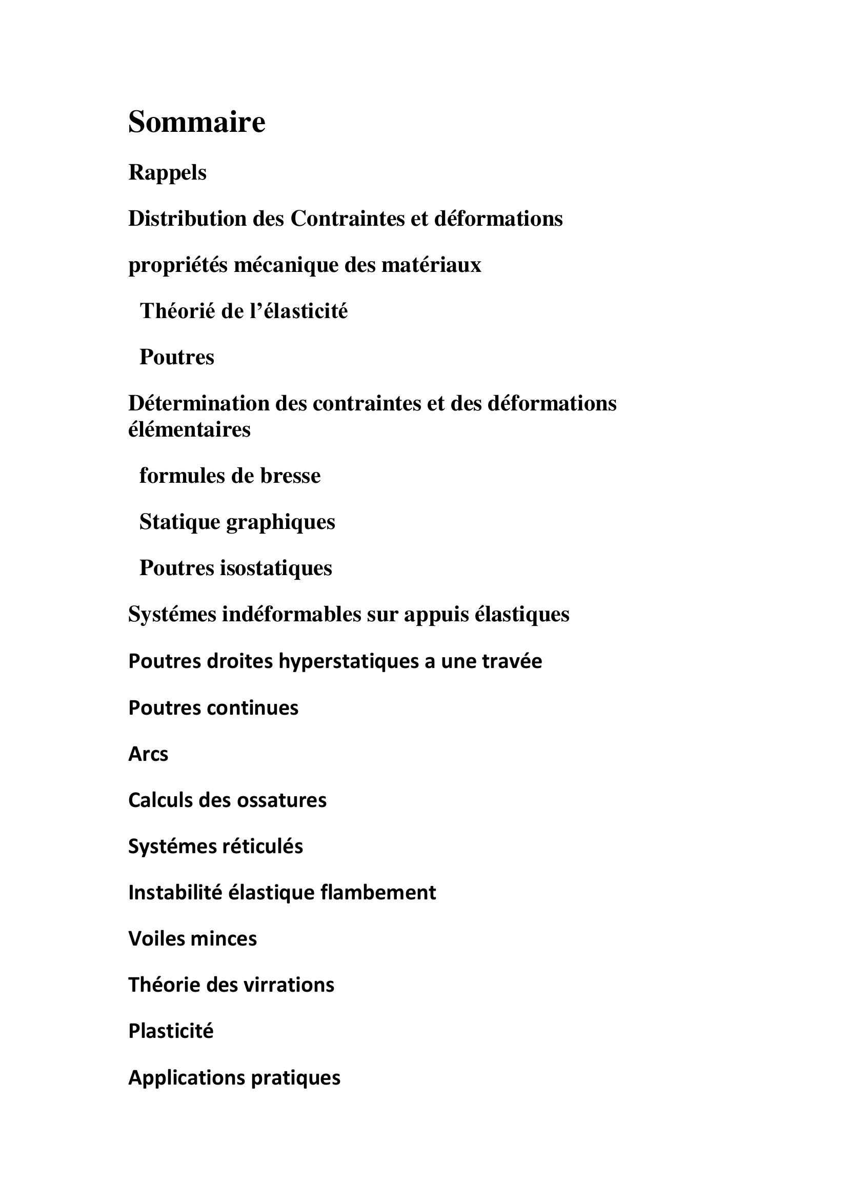 Cet livre est adressé aux éléves du premier cycle universitaire généralement , aux étudiants qui doivent posséder des connaissances dans la résistance des matériaux en vue d'application ultérieures . il traite la résistance des matériaux à partir des cas simples de telle manière que le lecteur pourra arriver à résoudre des problèmes plus compliqués .