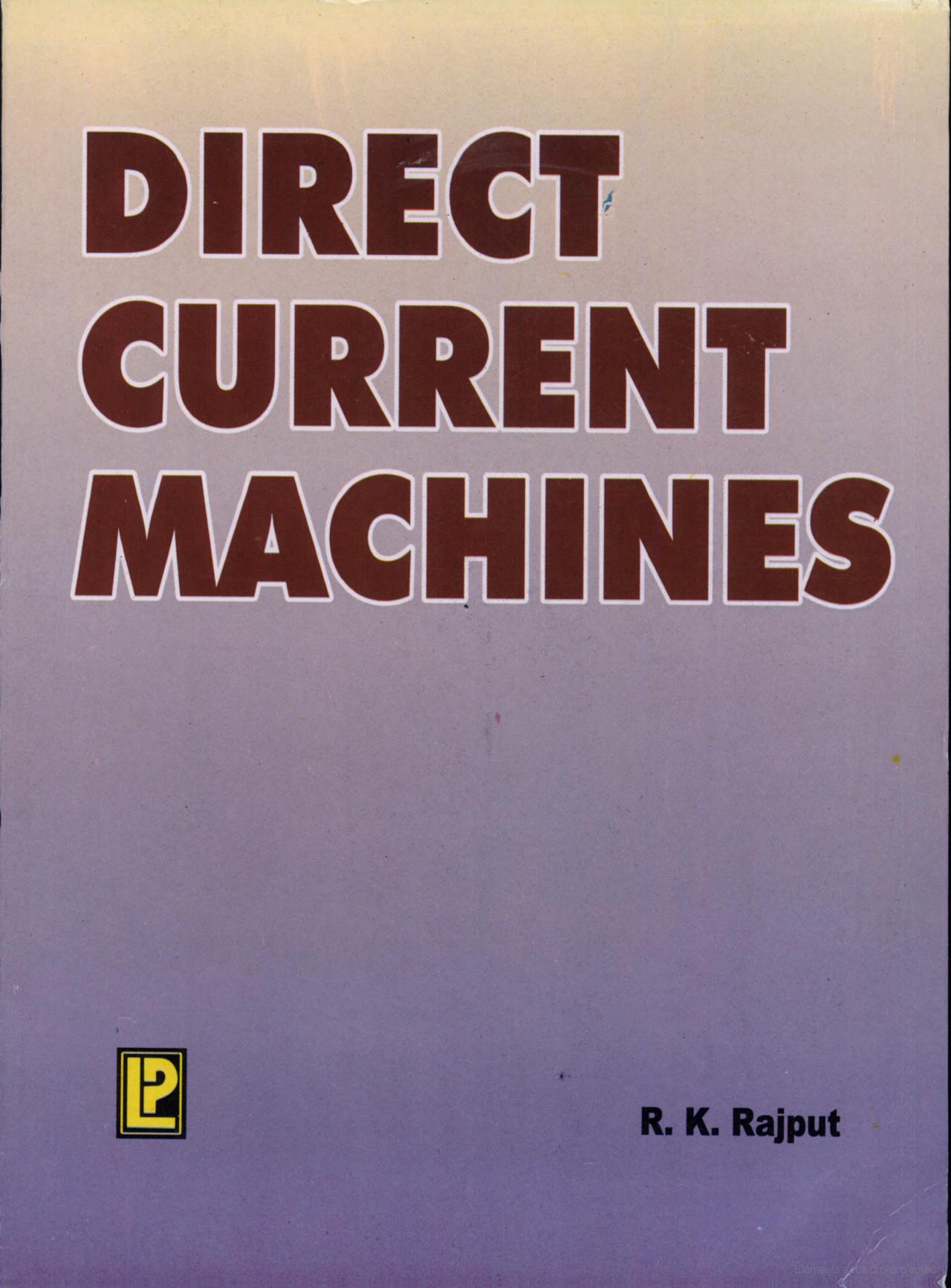 Direct Current Machines – in S.I. Units by R. K. Rajput (1993) is a foundational textbook that presents a clear and systematic study of DC machines, focusing on both theoretical principles and practical operation. The book explains the fundamentals of electromechanical energy conversion, the construction and working principles of DC generators and DC motors, and the role of key components such as armatures, field windings, commutators, and brushes. It covers important topics including EMF equations, torque production, armature reaction, commutation, losses, efficiency, testing methods, and speed control techniques, all expressed consistently in S.I. units. With its logical structure, illustrative diagrams, and numerous worked examples, the book is designed to help engineering students understand machine behavior, performance characteristics, and real-world applications of DC machines in industrial and electrical systems.