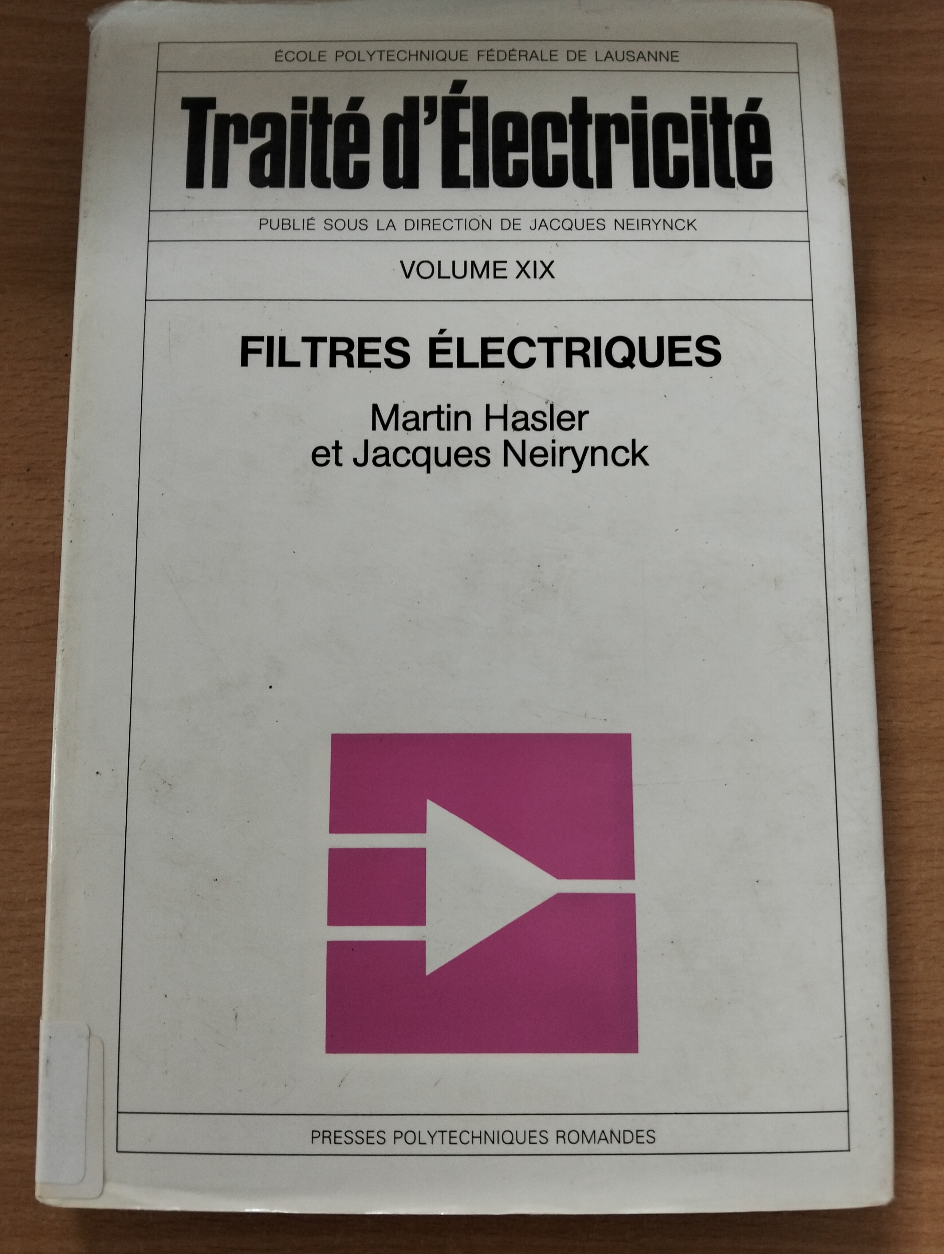 Le livre Traité d’électricité – Volume XIX : Filtres électriques de Martin Hasler (1989) constitue une référence approfondie sur la théorie et la conception des filtres électriques, en exposant de manière rigoureuse les principes fondamentaux qui régissent leur fonctionnement, tels que la réponse en fréquence, l’atténuation, la bande passante et les propriétés des réseaux électriques. L’ouvrage développe les principales méthodes d’analyse et de synthèse des filtres, notamment les techniques basées sur les paramètres-image, les approximations mathématiques et les méthodes numériques, permettant de concevoir des filtres à partir de spécifications précises. Il couvre aussi bien les filtres passifs LC que les filtres actifs RC, les filtres à capacités commutées et les filtres numériques, tout en mettant en évidence leurs domaines d’application et leurs contraintes pratiques. À travers des exemples détaillés et une approche pédagogique, l’auteur vise à donner au lecteur une compréhension profonde des mécanismes théoriques et pratiques des filtres, faisant de ce volume un ouvrage essentiel pour les étudiants avancés et les ingénieurs en électronique et télécommunications.