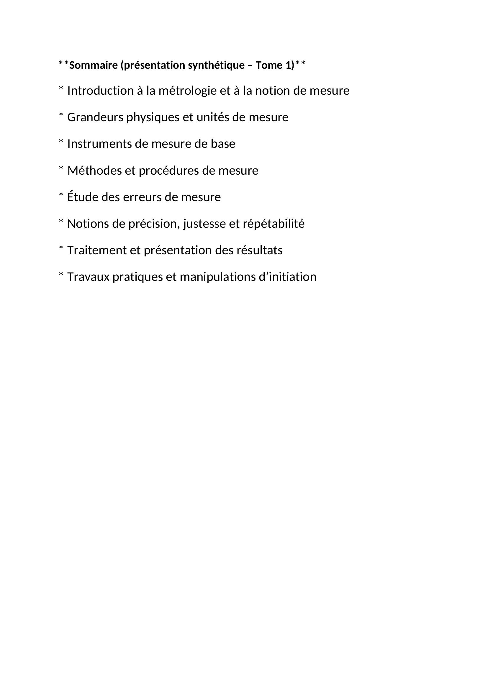 et ouvrage est un manuel d’initiation à la métrologie expérimentale, centré sur les travaux pratiques. Il présente les bases essentielles de la mesure (grandeurs, unités, instruments) et apprend à réaliser correctement des mesures, à mettre en œuvre des protocoles expérimentaux et à analyser les résultats. Le livre insiste sur la rigueur scientifique, la compréhension des erreurs de mesure et l’acquisition de bons réflexes en laboratoire. Il s’adresse principalement aux étudiants des filières scientifiques et techniques.