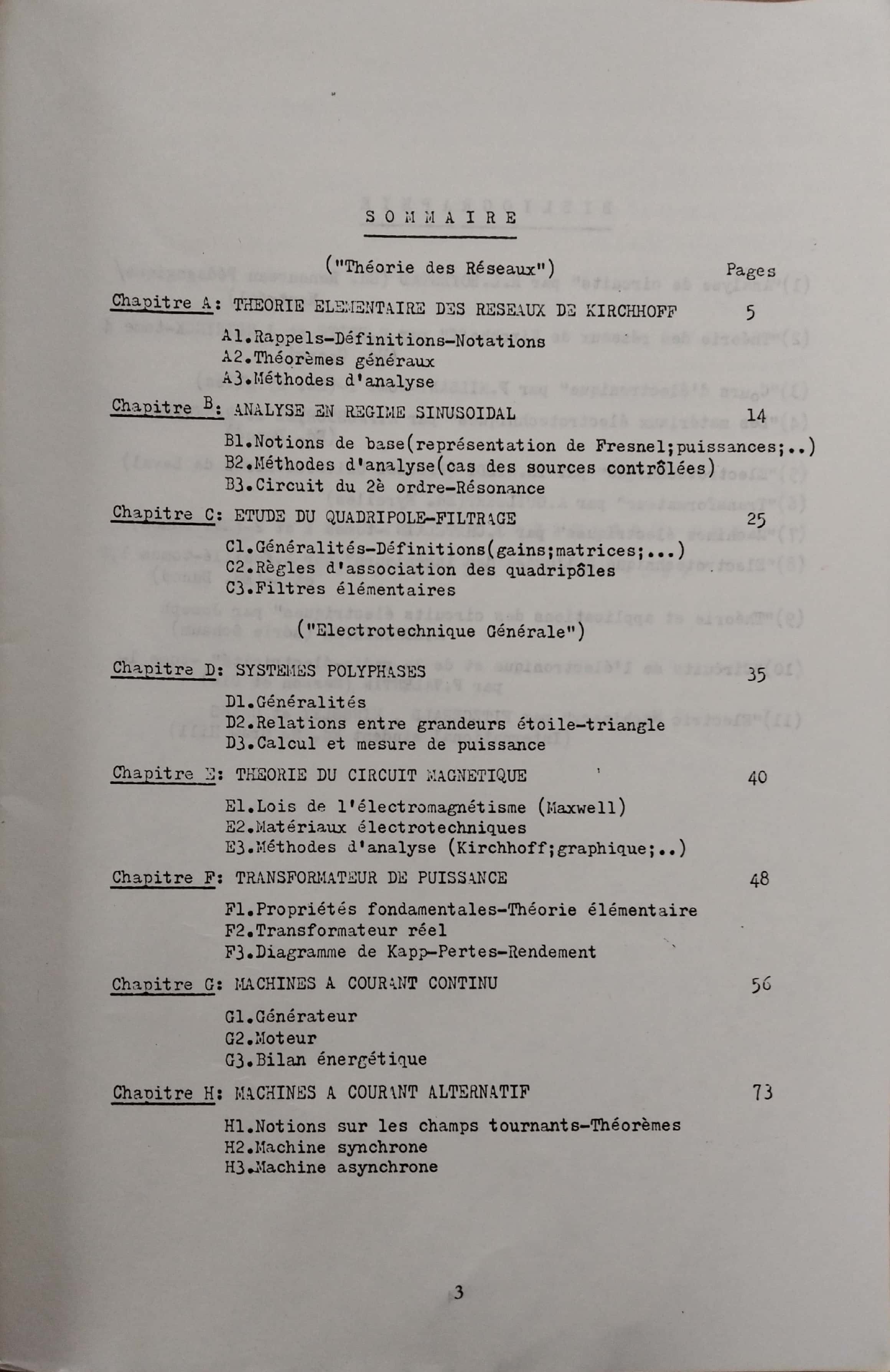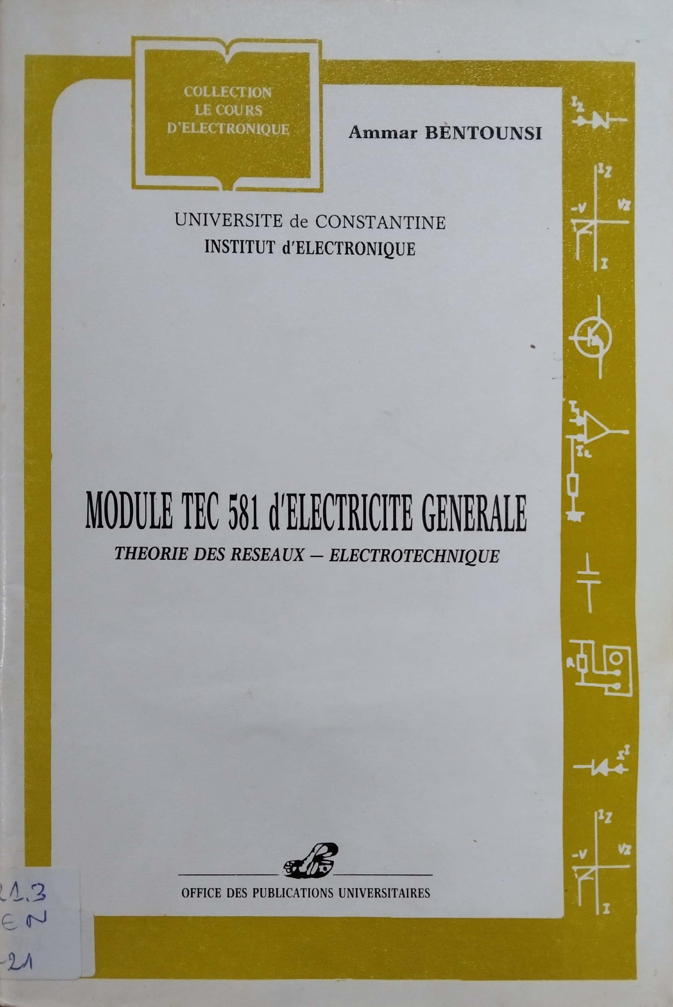 Le livre Module TEC 581 d’électricité générale : Théorie des réseaux – Électrotechnique d’Ammar Bentounsi (1991) est un manuel universitaire qui présente les bases essentielles de l’électrotechnique à travers l’étude de la théorie des réseaux électriques. Il expose de manière progressive les notions fondamentales de l’électricité telles que la tension, le courant, la résistance et la puissance, puis développe les lois principales régissant les circuits électriques, notamment celles d’Ohm et de Kirchhoff. L’ouvrage met l’accent sur l’analyse des réseaux linéaires en courant continu et en régime sinusoïdal, en utilisant des méthodes rigoureuses comme l’analyse nodale et des mailles, ainsi que la représentation complexe des impédances. Il traite également la modélisation des composants passifs (résistances, bobines, condensateurs) et leur comportement dans différents régimes, tout en reliant la théorie aux applications pratiques de l’électrotechnique. Ce livre constitue ainsi une référence pédagogique destinée à permettre aux étudiants de comprendre, analyser et résoudre des problèmes concrets liés aux réseaux électriques.