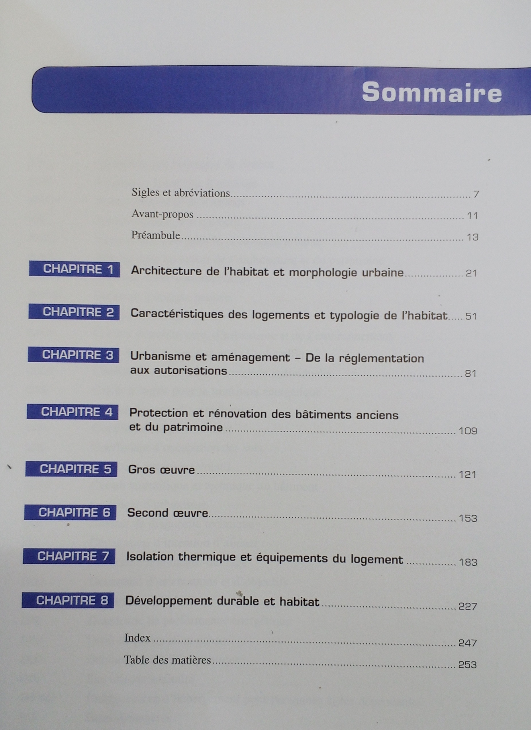 La surface des pièces d'un logement est-elle réglementée ' En quoi le PLU ou PLUi influe-t-il sur la conception d'un bâtiment ' Le choix des matériaux a-t-il une incidence déterminante sur la qualité thermique des constructions performantes, notamment les maisons passives ' Quelles techniques peuvent remédier aux déperditions de chaleur ' Une conception bioclimatique permet-elle de réaliser des économies d'énergie ' Un écoquartier est-il générateur de mixité sociale et fonctionnelle ' Ce manuel illustré, à la fois pratique et didactique, est une introduction complète, claire et synthétique aux thématiques essentielles pour comprendre les enjeux de l'architecture et de l'habitat. Traitant des aspects techniques, artistiques, sociologiques et juridiques, il aborde : ' les styles architecturaux, avec des descriptions simples pour reconnaître l'époque de construction des maisons et immeubles ainsi que la terminologie générale utilisée ; ' la morphologie et l'aménagement des bâtiments (taille, configuration, agencement, calculs de surfaces utilisées en construction et en immobilier) ; ' les règles d'urbanisme encadrant notamment les documents de planification, le dépôt d'un permis de construire ou d'une déclaration préalable de travaux, et les outils opérationnels d'aménagement ; ' les moyens de protection et de préservation du patrimoine architectural ; ' les éléments techniques de la construction, du gros oeuvre au second oeuvre, ainsi que l'ensemble des diagnostics immobiliers obligatoires ; ' la thermie et les équipements du logement ; ' le concept de développement durable à l'échelle des logements et des quartiers.