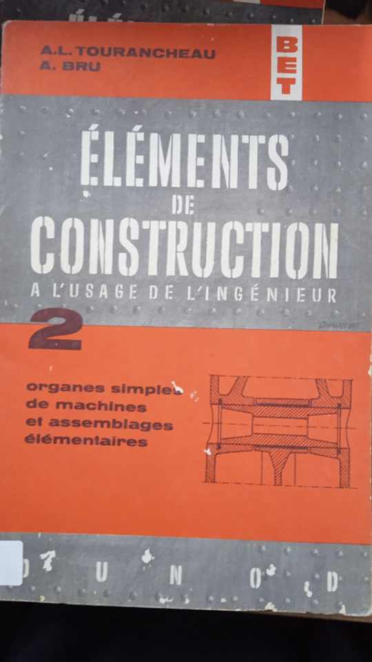 Eléments de construction a l'usage de l'ingénieur. T2 , organes simples de machines assemblages élémentaires