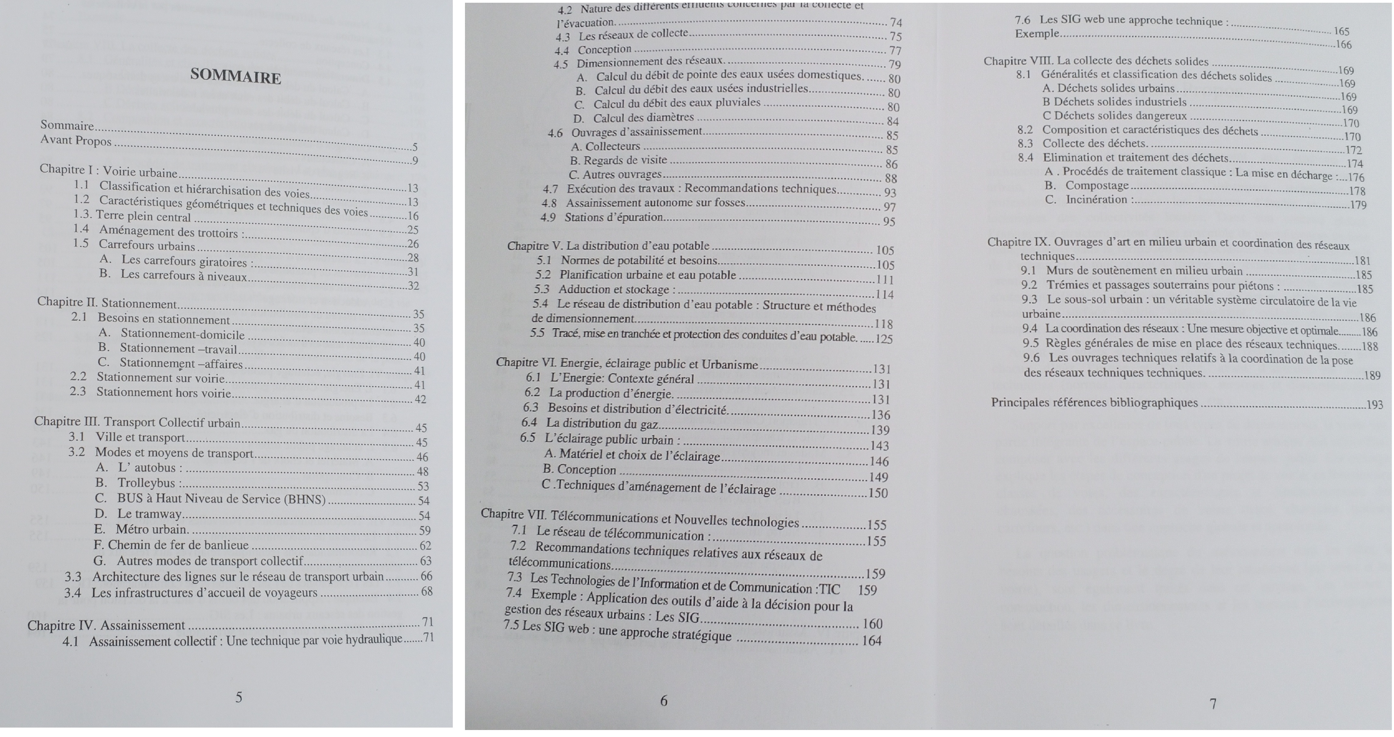 L'ouvrage se structure autour d'un ensemble de connaissances de base indispensables dans la formation des spécialistes et des professionnels de l'urbain et de tout ce qui y touche. En somme, il traite dans un premier temps de l'ensemble des réseaux techniques, ouvrages souterrains (eau, assainissement, gaz, éclairage urbain, trémies), réseaux de surface (voirie, stationnement, collecte des ordures, transport collectif), et ensuite de leur coordination.Autant de sujets sont traités dans cet ouvrage qui définit pour chacun d'eux l'usage et l'utilité, avant d'aborder les aspects techniques (normes, caractéristiques, mesures et dimensionnement, conception, insertion, aménagement, etc.).
