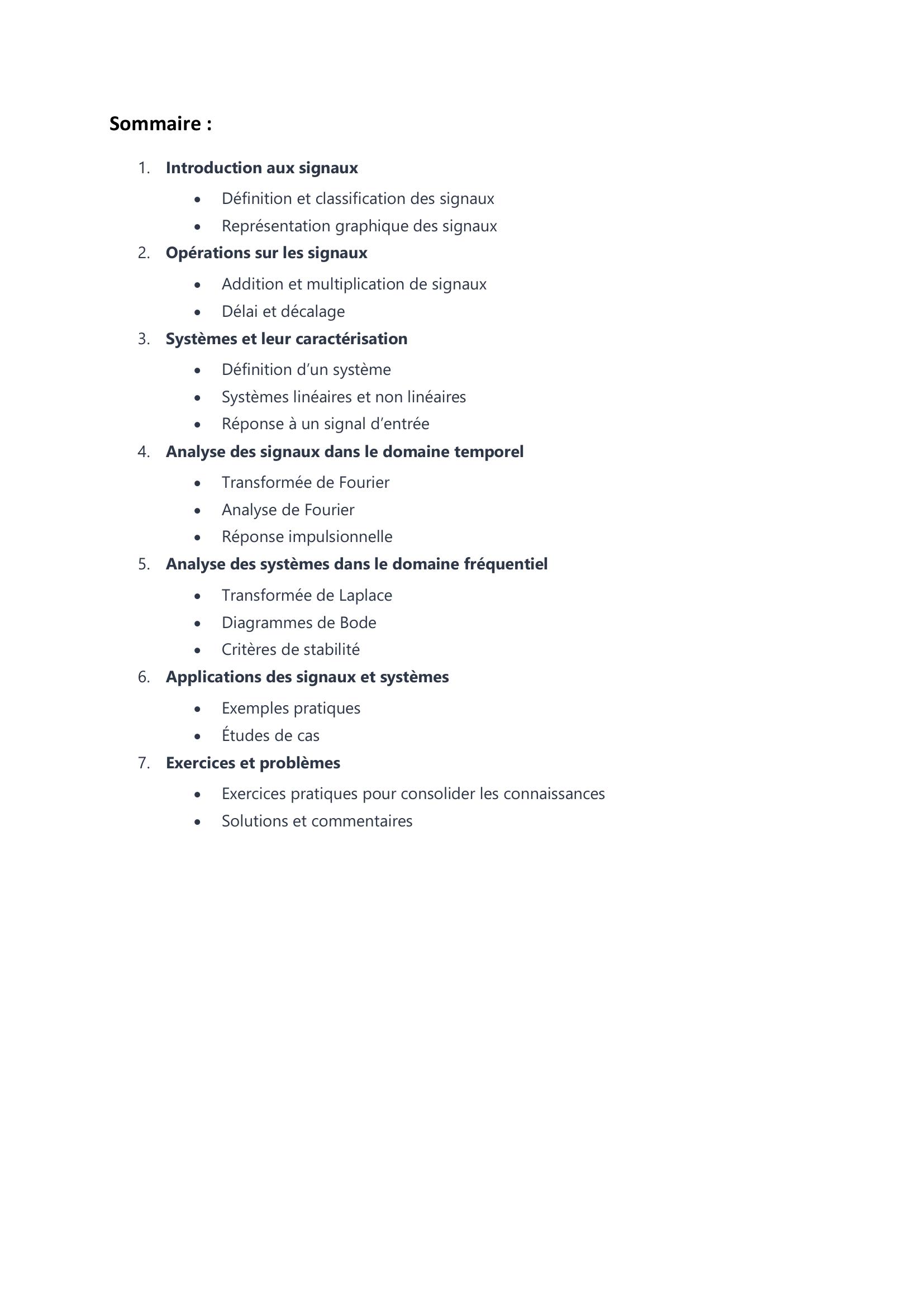 Cet ouvrage porte sur l'analyse des systèmes linéaires invariants (SLI) en automatique, couvrant la réponse temporelle, la fonction de transfert, et la représentation de Laplace. Les exercices clés incluent le calcul de réponses impulsionnelles, la résolution d'équations différentielles, et la détermination de la stabilité.