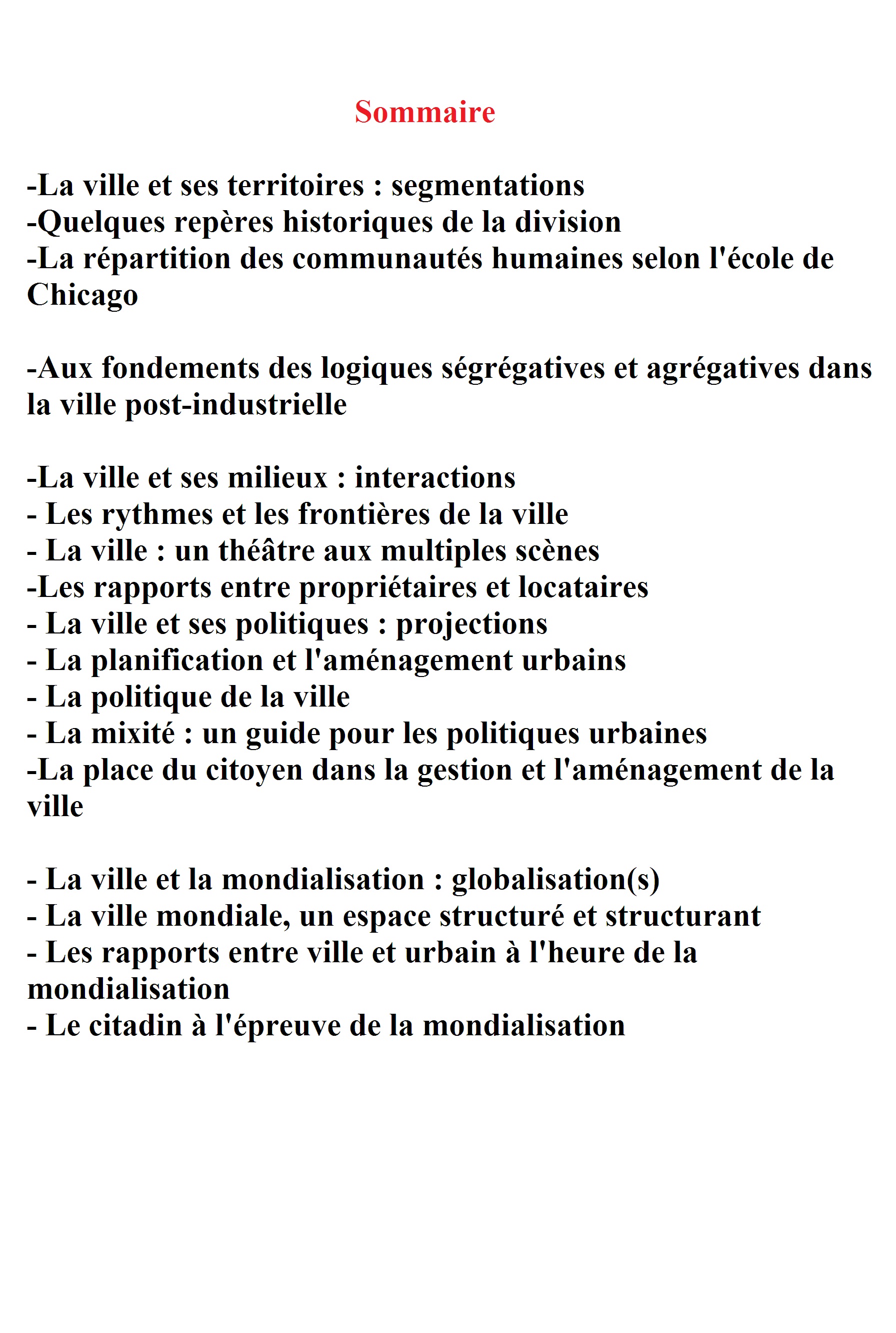 Aujourd'hui, la ville est devenue un phénomène social total jusqu'à concerner la planète tout entière. Plus de la moitié de la population mondiale réside en effet au sein des agglomérations urbaines ; en France, près de quatre-vingt pour cent des individus sont partie prenante des processus d'urbanisation qui influencent les esprits et transforment le paysage. Le monde urbain se trouve alors immanquablement au coeur de nombreuses controverses et débats : fragmentation sociale et territoriale, gestion et gouvernement des ensembles urbains, intégration des populations, participation aux échanges planétaires, aménagement d'une ville durable... Tous ces points sont d'autant plus intéressants à comprendre et à analyser qu'ils dépassent le cadre spécifique de la ville pour en définitive interroger notre société dans sa totalité. Les ignorer reviendrait d'une certaine façon à prendre le risque que la ville, qui pourtant est un univers de cosmopolitisme, de plaisirs culturels et de relations entre les hommes, devienne le lieu où s'exprime la part maudite de l'homme.