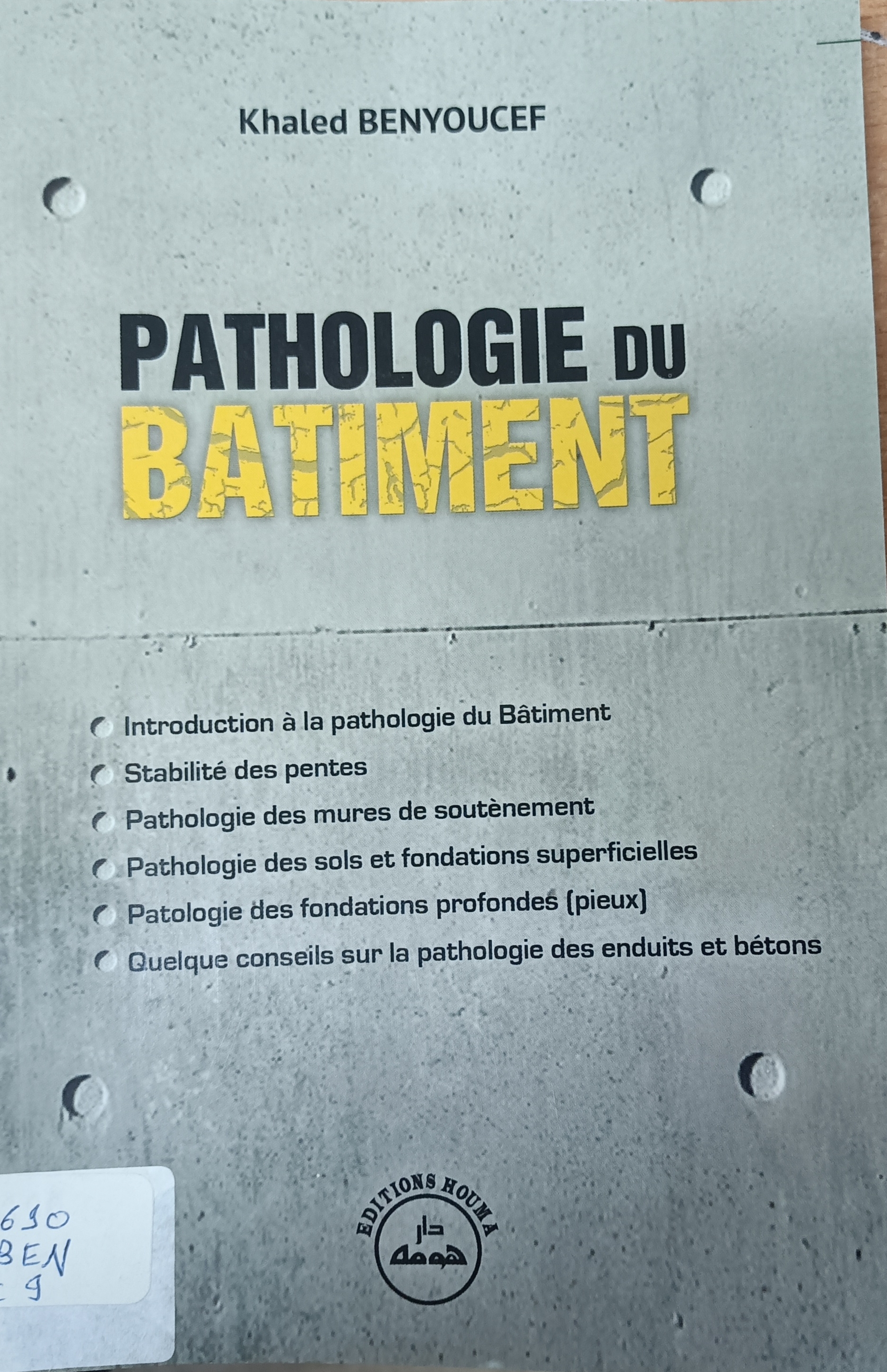 Benyoucef, K. (2015). Pathologie du batiment . Editions Houma;