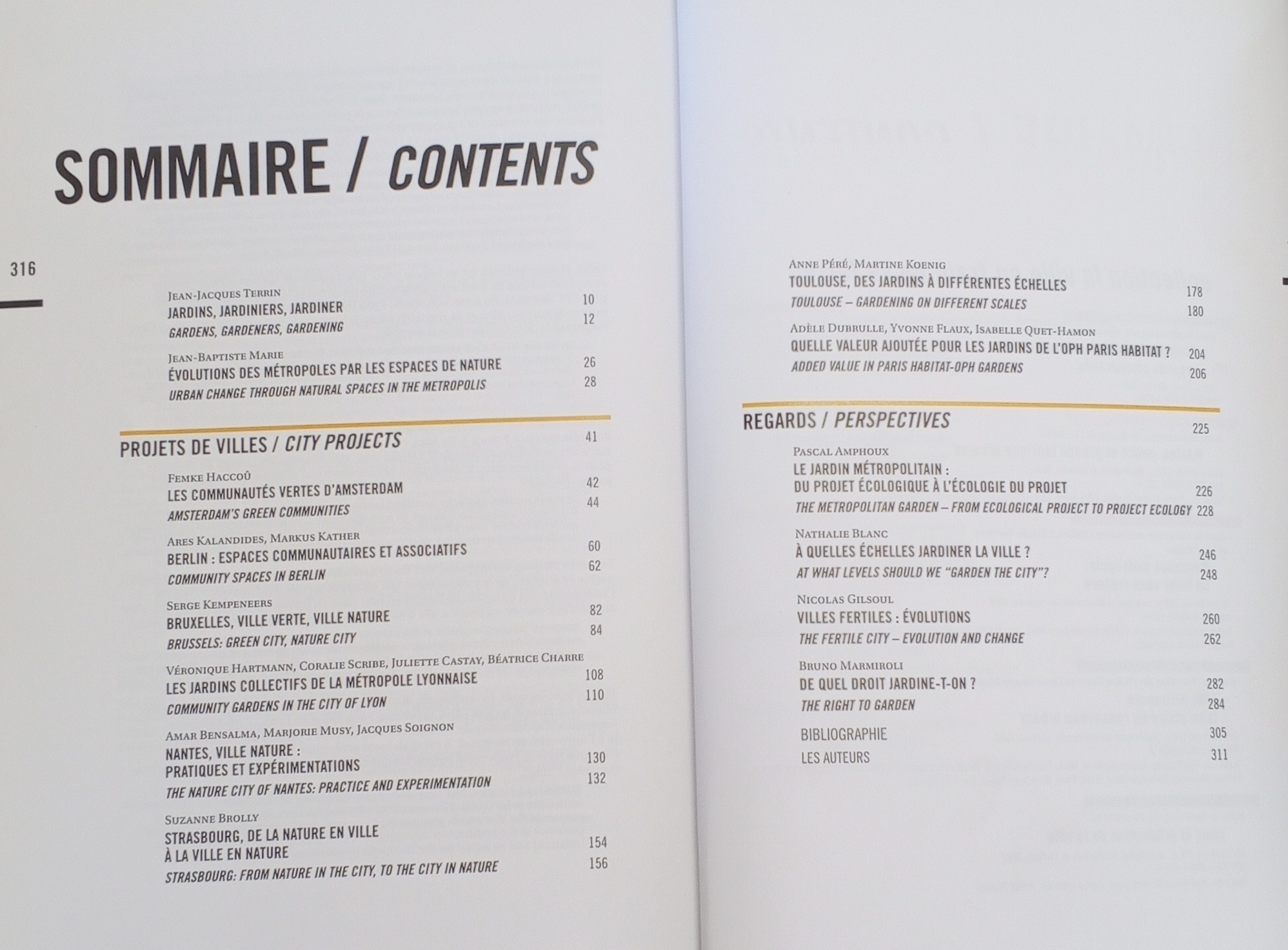 Jardinier en ville n'est pas un phénomène nouveau. Dans le contexte de crise actuel, le jardin n'est plus simplement ornemental ou récréatif mais prend une dimension environnementale, sociale et économique, et ce à toutes les échelles de la métropole, de la plus petite cellule familiale au grand territoire métropolitain. Délaissé urbain transformé en espace collectif cultivable à Amsterdam, aéroport reconverti en vaste espace public et pratique du maraîchage à Berlin, friche réaménagée sur un mode semi-naturel à Bruxelles, îlot jardiné à vocation festive et artistique à Lyon, réserve marécageuse favorisant la biodiversité à Nantes, parc naturel urbain à Strasbourg, jardin partagé géré selon un principe de démocratie participative à Toulouse, végétalisation pour l'amélioration du cadre de vie des habitants de logements sociaux à Paris : les divers exemples européens étudiés se présentent comme autant d'expressions de nouvelles attentes urbaines qui invitent à repenser les frontières entre espaces public et privé et à percevoir la nature comme un levier essentiel d'aménagement de la ville.