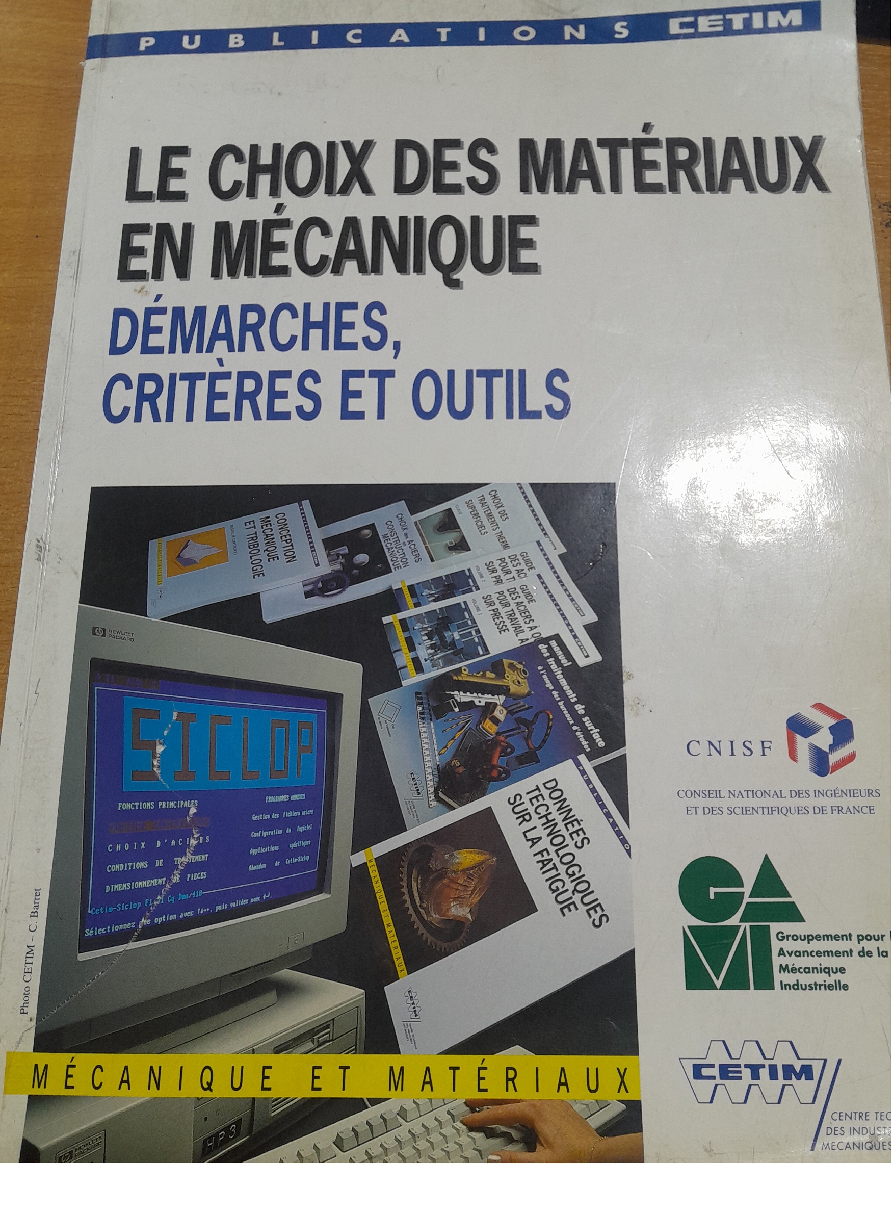 Cet ouvrage est un guide méthodologique destiné aux ingénieurs et techniciens pour les aider dans le choix rationnel des matériaux en conception mécanique. Il présente : • Une démarche structurée de sélection des matériaux intégrée au processus de conception. • Les critères techniques, mécaniques, thermiques, chimiques et économiques à considérer. • Les outils d’aide à la décision, notamment les bases de données, logiciels spécialisés (comme SICLOP), abaques et méthodes comparatives. • L’intégration des contraintes de fabrication, de maintenance et de durabilité. • Des exemples concrets d’applications industrielles. L’ouvrage met l’accent sur une approche multicritère, combinant performance, coût, disponibilité et environnement d’utilisation