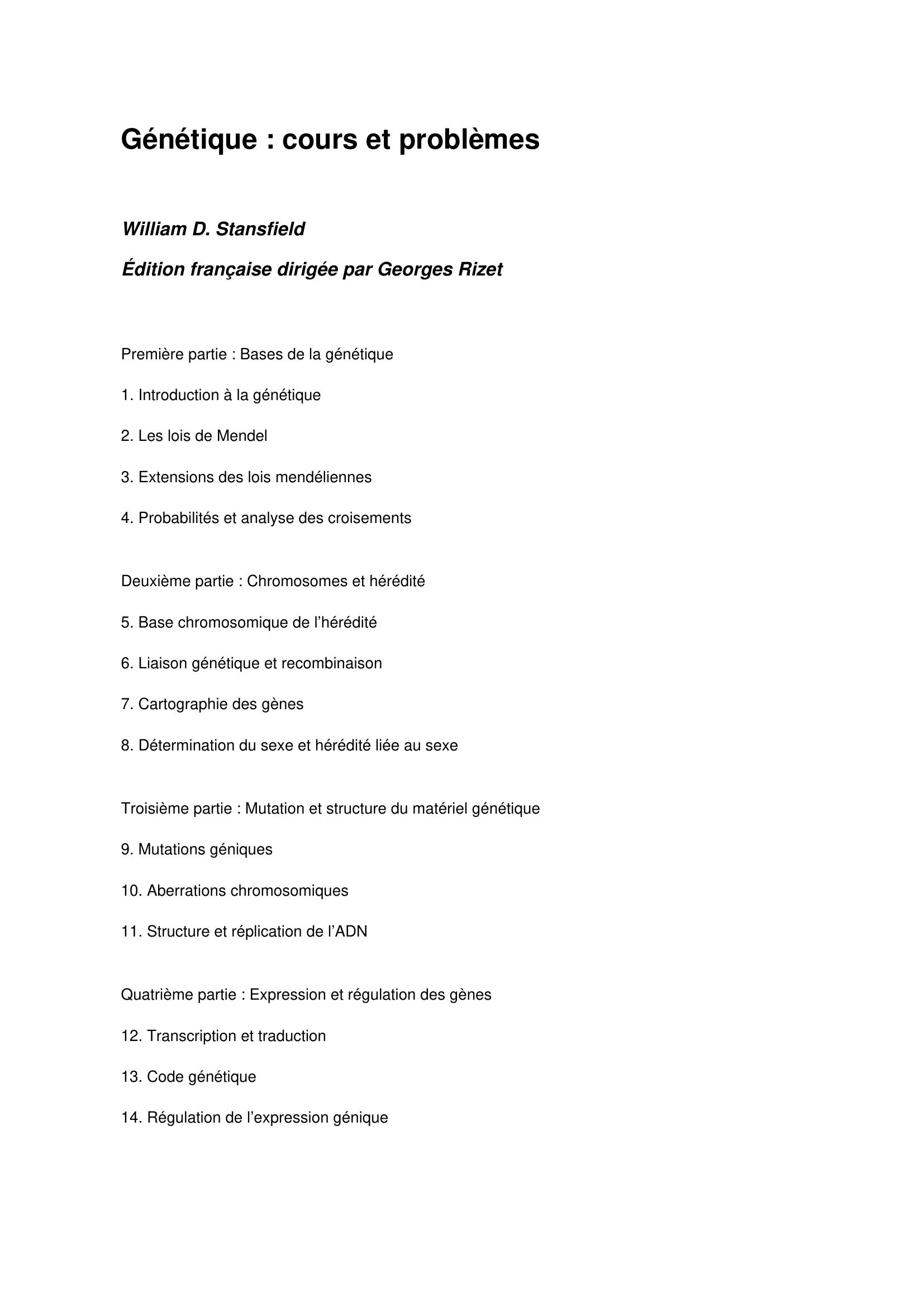 Ce livre sert à la fois de cours de génétique et de recueil de problèmes résolus pour aider les étudiants à maîtriser les mécanismes fondamentaux de l’hérédité et à s’entraîner avant les examens. Il combine des explications claires de concepts et une grande variété d’exercices corrigés pour renforcer la compréhension