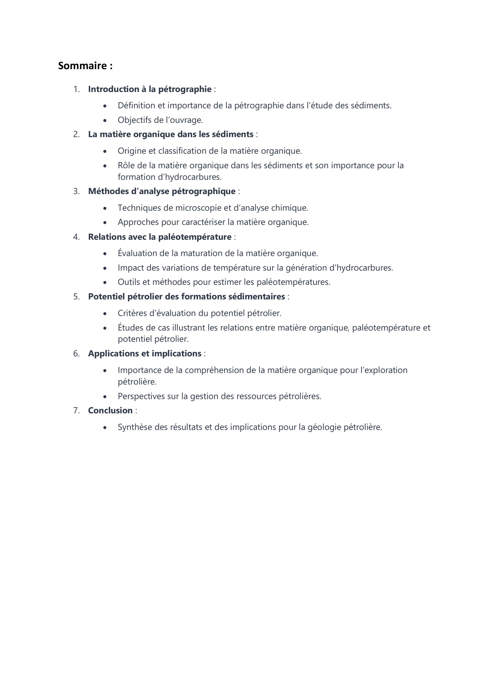 Cet ouvrage constitue une ressource essentielle pour les géologues, les ingénieurs pétroliers et les chercheurs s’intéressant aux relations entre la matière organique des sédiments, les conditions paléoclimatiques et le potentiel pétrolier. Il offre des perspectives sur l’importance de la compréhension de la matière organique dans le contexte de l’exploration des hydrocarbures.