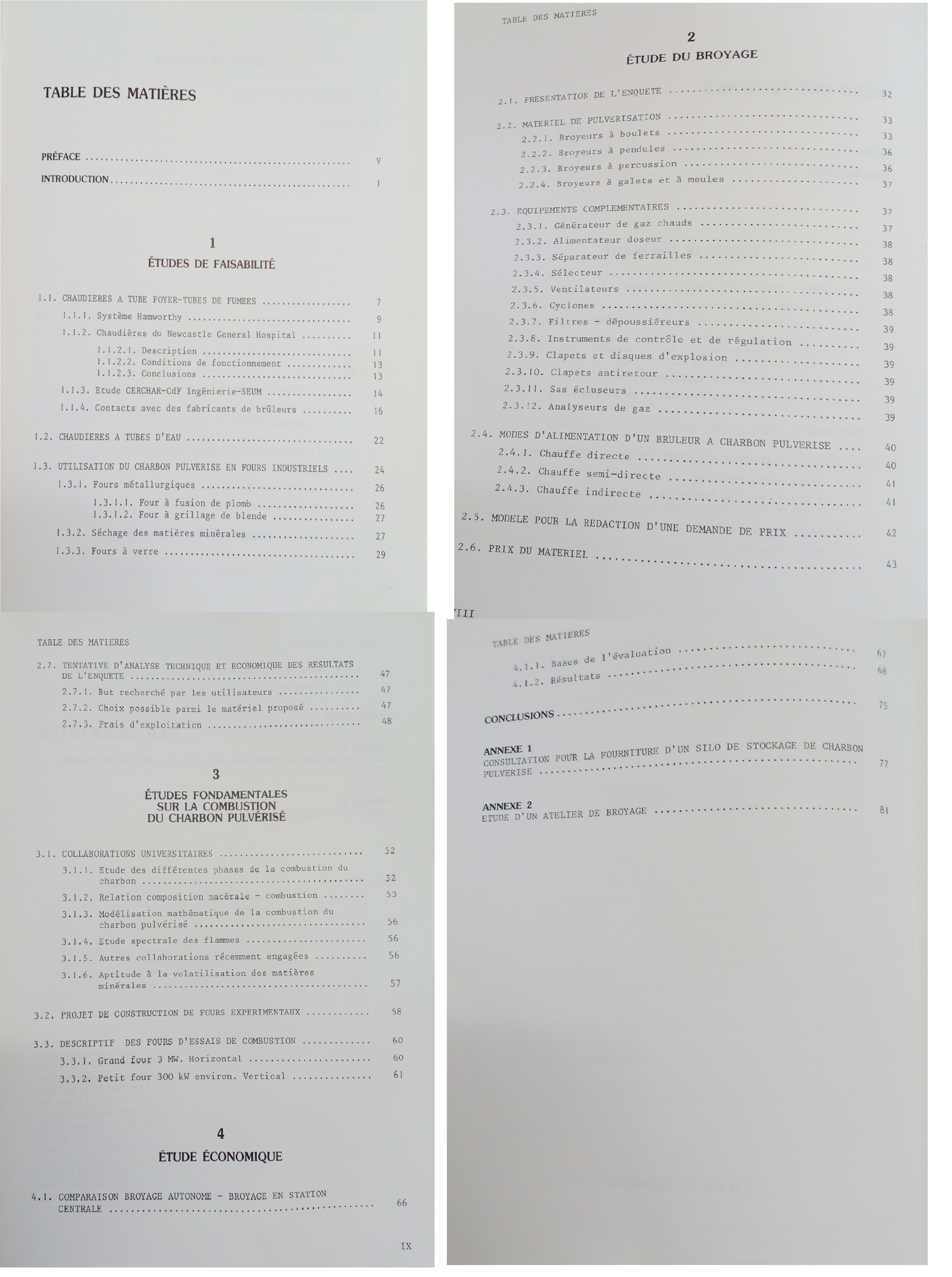 L'évolution des techniques et de la réglementation ainsi que la perspective d'un surplus de fines à écouler, pour lesquelles l'écart de prix pourrait s'accentuer par rapport aux charbons calibrés, conduisent à penser que cette limite pourrait être notablement abaissée. Les réflexions engagées sur ce sujet ont montré que les connaissances acquises sur l'utilisation du charbon pul-vérisé dans le domaine des très grandes puissances ne permettaient pas de fixer à coup sûr les nouvelles limi-tes. Il a donc été décidé de lancer un programme de recherche préparatoire à des opérations de démonstration sur chaudières industrielles, portant sur les points suivants : étude de faisabilité de l'utilisation du charbon pulvérisé : en chaudière à tube foyer tubes de fumées de faible puissance, en chaudière à tube d'eau de moyenne puissance, en fours industriels,