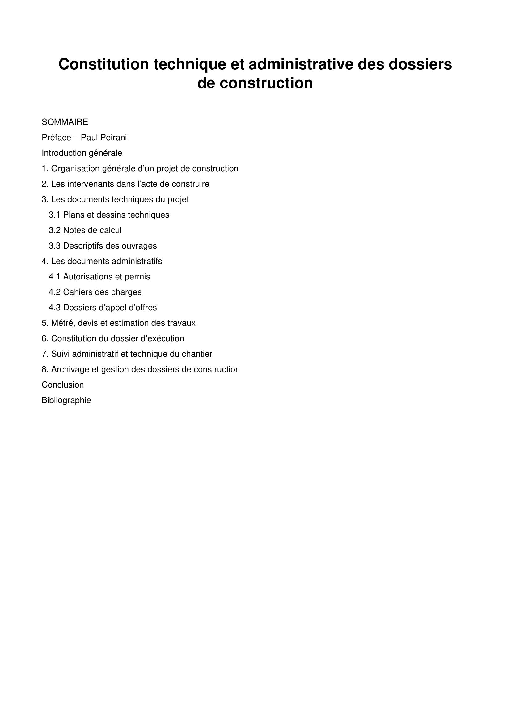 Cet ouvrage explique comment préparer et organiser les dossiers techniques et administratifs nécessaires à la réalisation d’un projet de construction. Les auteurs présentent les documents indispensables depuis la phase de conception jusqu’à l’exécution des travaux. Le livre décrit d’abord les différents types de documents techniques utilisés dans la construction : plans, notes de calcul, descriptifs des ouvrages, devis et documents graphiques. Il détaille ensuite les pièces administratives qui encadrent un chantier, comme les autorisations, les contrats, les cahiers des charges et les procédures réglementaires. Les auteurs expliquent également le rôle des différents intervenants (maître d’ouvrage, architecte, ingénieur, entreprises) et la manière dont les documents doivent être préparés, classés et utilisés pour assurer une bonne gestion du projet.