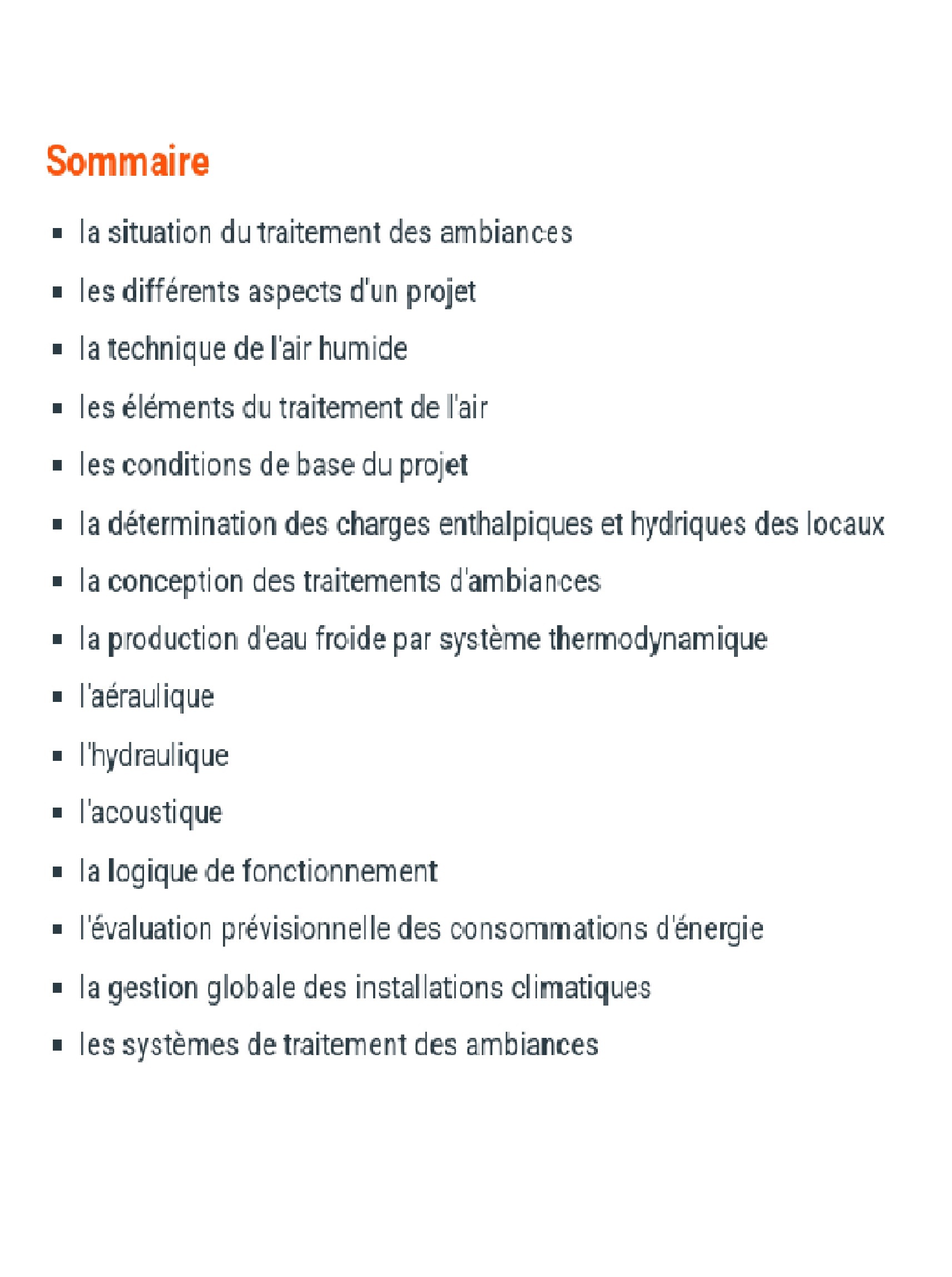 Parmi les métiers émergents à l'aube du prochain millénaire, ceux liés au confort de l'habitat des bâtiments recevant du public et industriels ont un bel avenir. Les usagers exigent de plus en plus des conditions d'ambiance en température, humidité, et environnement d'une grande qualité. Les aspects réglementaires du traitement des ambiances relatifs à l'hygiène, la santé, la salubrité, la sécurité, l'acoustique et l'environnement nécessitent la formation de spécialistes de haut niveau avec des compétences techniques, relationnelles et organisationnelles, maîtrisant une démarche de projet pour concevoir des traitements d'ambiances correspondant au cahier des charges des maîtres d'ouvrage. Une équipe de professionnels expérimentés, coordonnée par Monsieur Roger CASARI, Ingénieur Conseil en conditionnement thermique et hydrique des ambiances, a élaboré un guide de conception des installations de climatisation et de conditionnement de l'air qui permettra aux maîtres d'oeuvre de maîtriser une démarche méthodologique du projet. Il sera également un outil très précieux au service des enseignants chargés de la formation des techniciens supérieurs Fluides - Energies - Environnement.