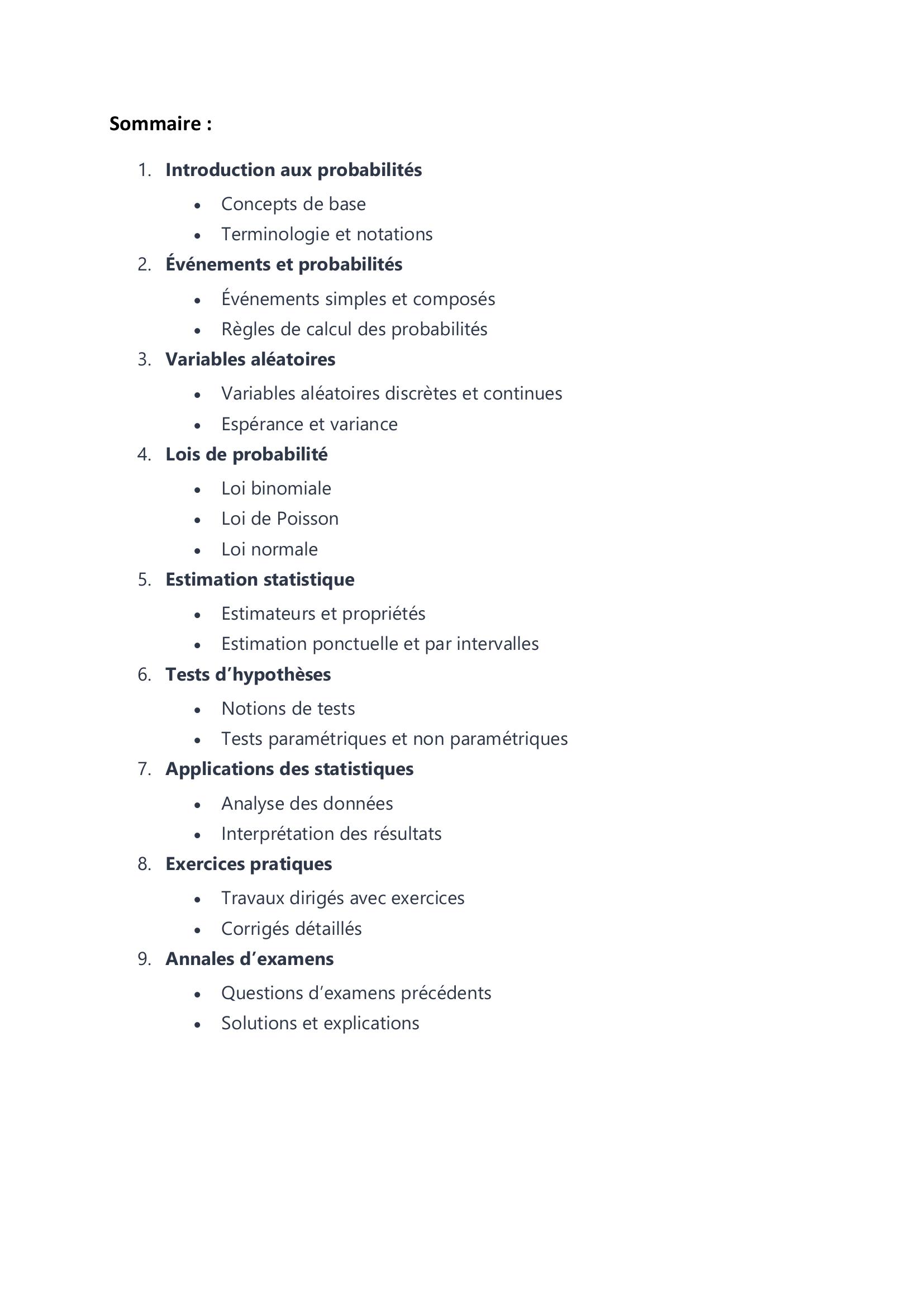 Cet ouvrage constitue un outil précieux pour les étudiants souhaitant maîtriser les bases des probabilités et des statistiques, avec une approche pratique et orientée vers l’examen.