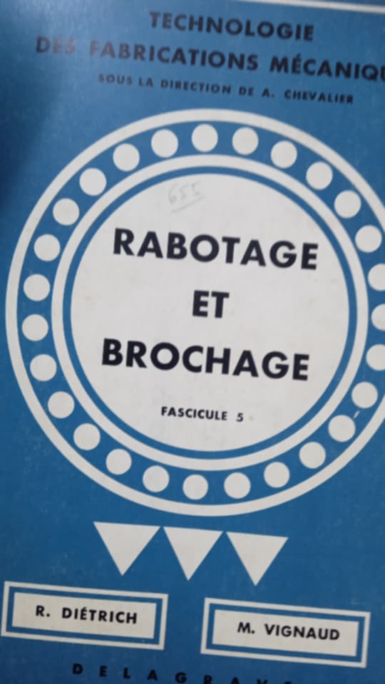 Dietrich, R. & Vignaud, M. (1967). Rabotage mortaisage et brochage des métaux. F5 . Librairie Delagrave;