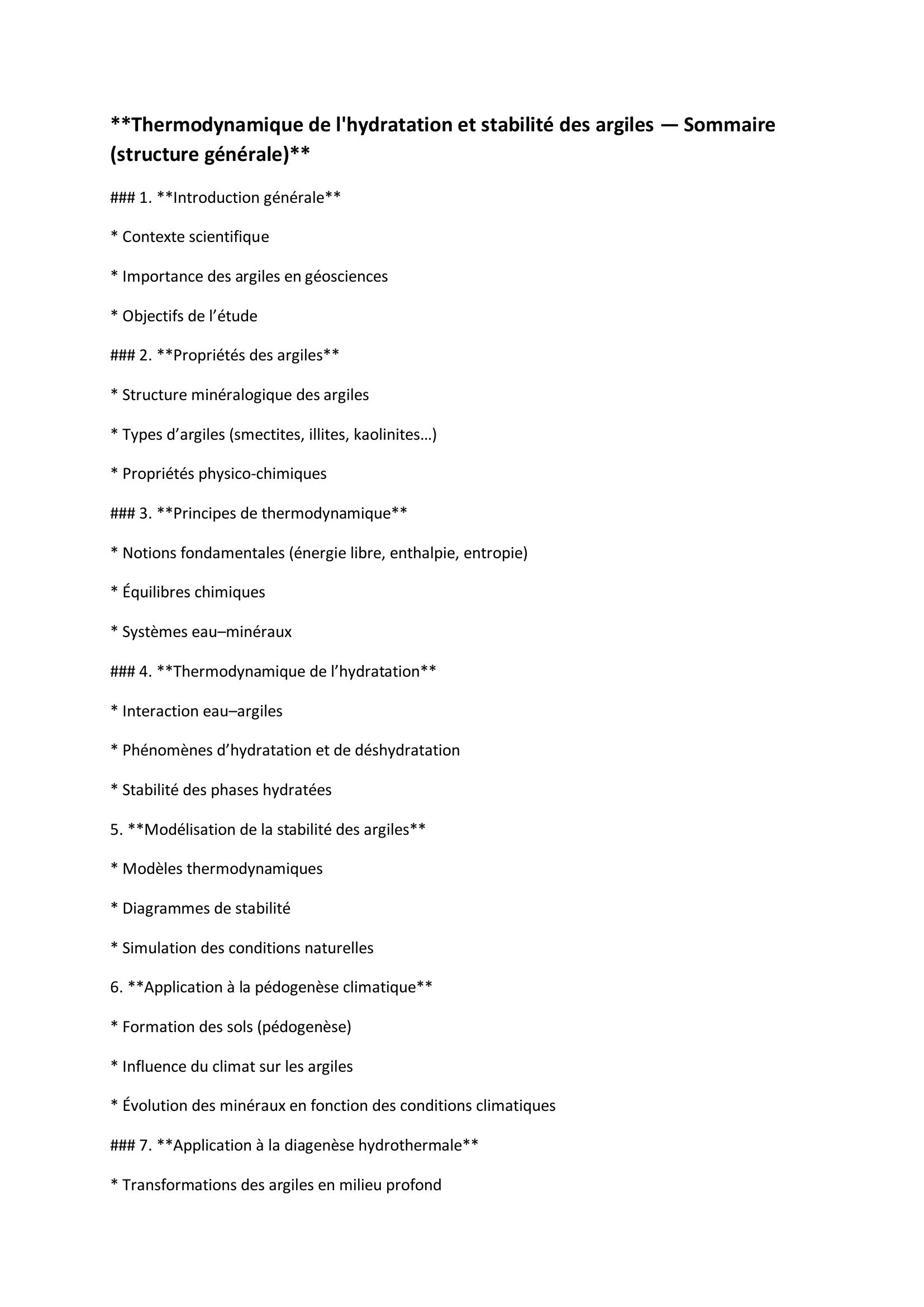 Ce travail étudie comment les argiles interagissent avec l’eau et comment cela influence leur stabilité à l’aide de modèles thermodynamiques. Il applique ces modèles à deux contextes : la formation des sols (pédogenèse) et la transformation des roches en conditions hydrothermales (diagenèse).
