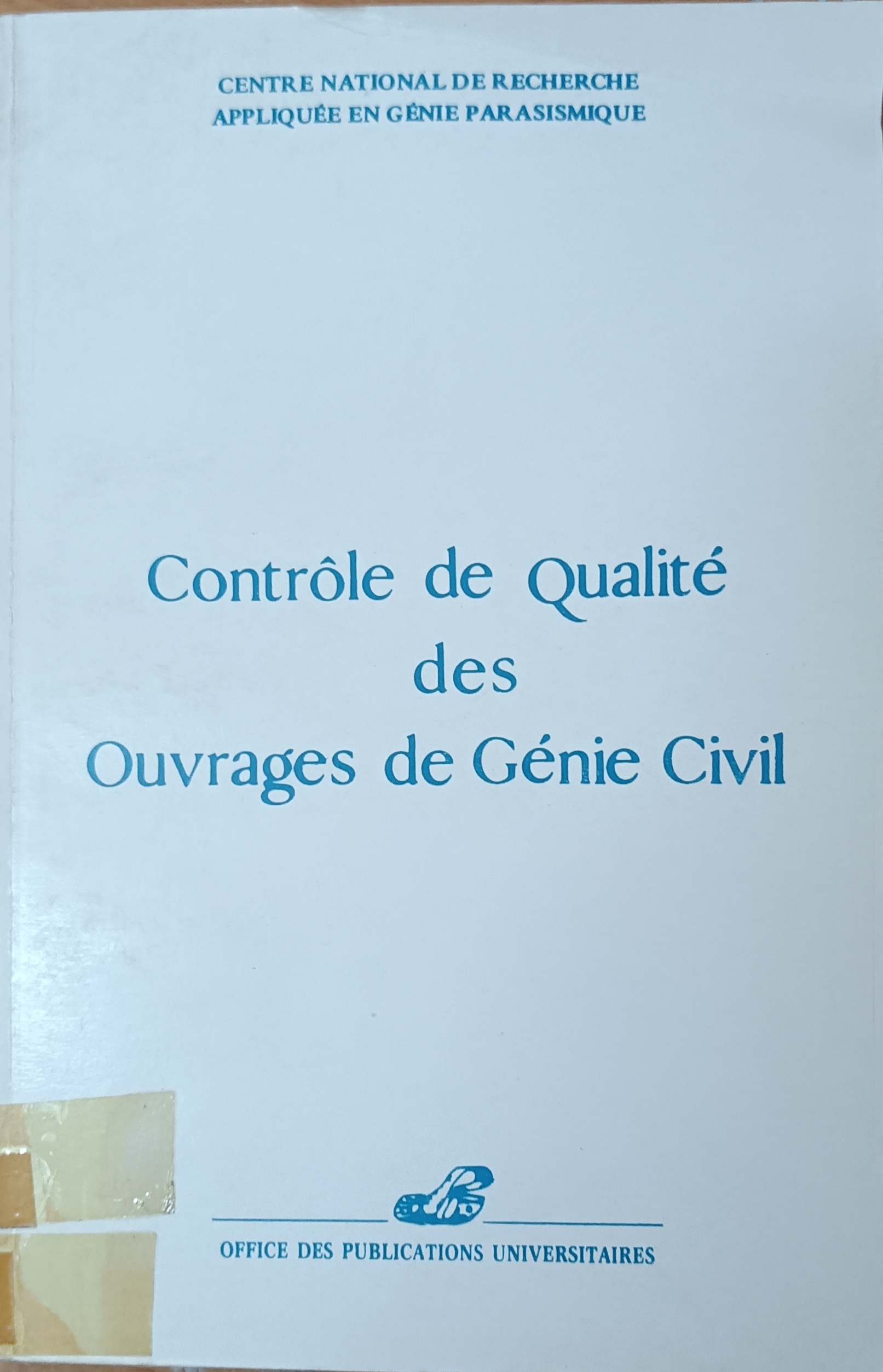 Centre nationale de recherche appliquée en génie parasismique (1988). Contrôle de qualité des ouvrages de génie civil . OPU;