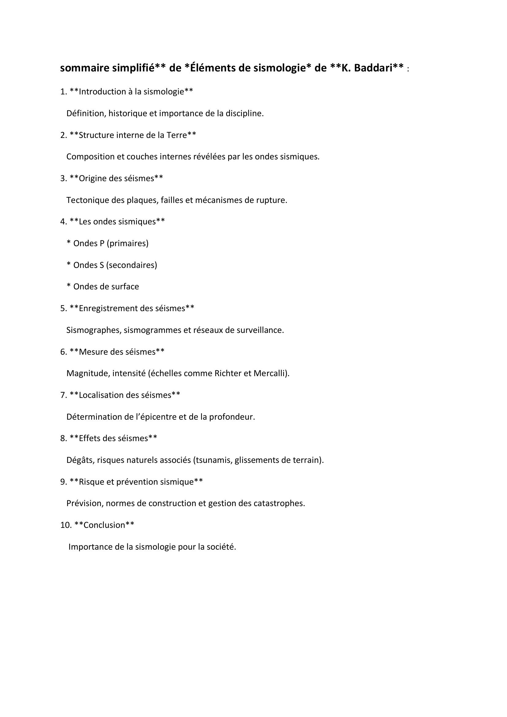 Cet ouvrage présente les bases de la sismologie, la science qui étudie les tremblements de terre et la propagation des ondes sismiques. Il explique l’origine des séismes, liée aux mouvements des plaques tectoniques et aux ruptures dans la croûte terrestre. Le livre décrit les différents types d’ondes sismiques (ondes P, S et de surface), leurs caractéristiques et leur rôle dans l’étude de l’intérieur de la Terre. Il aborde aussi les méthodes de mesure des séismes, notamment les sismographes et les échelles de magnitude.